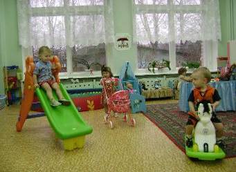 В группах детей от 2–3 лет постепенно вносятся изменения в окружающую среду. Хотя ведущей деятельностью является предметная, но именно в раннем возрасте зарождается сюжетно-ролевая игра. В этом возрасте все игрушки должны быть среднего размера, позволяющие более разнообразно использовать окружающее малыша пространство, создавать более развернутые и содержательные сюжеты.