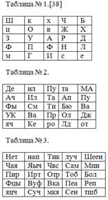 Работа с таблицами проводится следующим образом: на уроке ученики удерживают таблицу перед собой. Считывают её, удерживая взгляд на центральном квадрате. Работа с первой таблицей ведётся до тех пор, пока ребёнок не научится считывать все знаки[39].