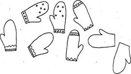 Дитина має на малюнку з'єднати лінією однакові рукавички у пари, показати, яку рукавичку одягнемо на праву руку, а яку — на ліву. Учні початкових класів можуть під кожною рукавичкою зробити відповідні літерні позначення: «П»