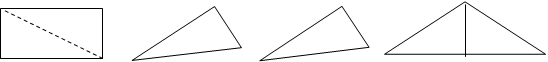 Приведем отрывок из монографии Н.Ф. Талызиной «Педагогическая психология» [41, с. 58] о выполнении учащимися второго класса следующего задания. Вначале были предъявлены два совершенно равных квадрата, а затем один из них был разрезан по диагонали на два треугольника, из которых, в свою очередь, был составлен один треугольник.