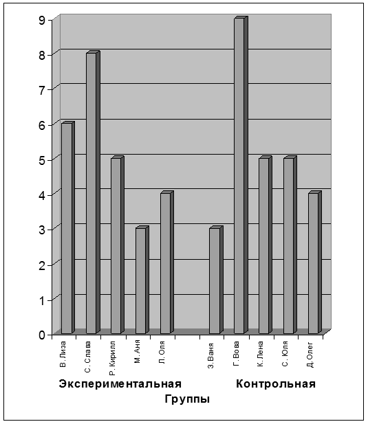 По результатам констатирующего эксперимента был сделан вывод, что менее всего развит словарный запас у М. Ани и Л. Оли, а также присутствуют пробелы в словарном запасе у В. Лизы, Р. Кирилла.