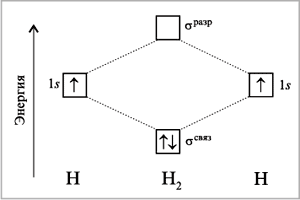 Рис. 1. Схема заполнения электронами молекулярных орбиталей в молекуле Н2