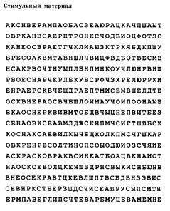 Ребенку дается бланк с напечатанными на нем 5 строчками случайно набранных букв, следующих друг за другом без пробелов. Среди этих букв ребенок должен отыскать 10 слов – названий животных (3-, 4-, 5-сложных) и подчеркнуть их. На выполнение всего задания отводится 5 мин. Показателем успешности служит число правильно найденных животных и скорость выполнения задания.