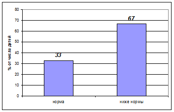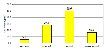 Рис. 3. – Уровни скорости и объема внимания у школьников при оценки по таблица Шульте.