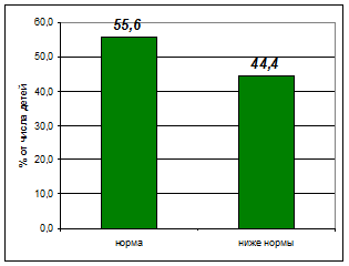 Как видим, чуть более половины класса показывают нормативные показатели внимания по характеристикам скорости и объема.