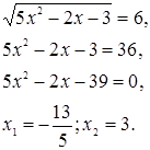 по определению квадратного корня из чего выводится метод решения иррациональных уравнений – метод возведения в квадрат обеих частей уравнения. Затем данный метод демонстрируется на примерах решения иррациональных уравнений вида