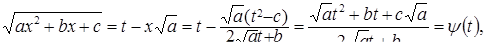 – некоторые постоянные. Покажем, что это выражение всегда рационализируется одной из так называемых подстановок Эйлера.