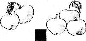 Сколько яблок нарисовано? Сколько яблок справа от квадрата? Сколько слева? С какой стороны от квадрата яблок больше? На сколько?