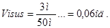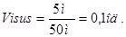 Нормальне око розрізняє знаки першого ряду з 50 м, а якщо піддослідний читає цей ряд з 5 метрів, отже, його гострота зору рівна0,1одиниці: