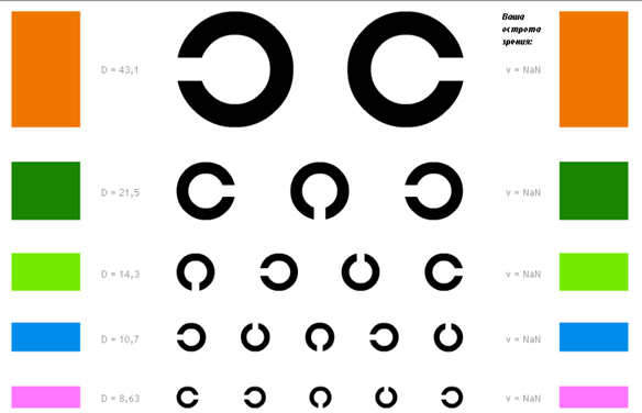Таким чином, оцінка гостроти зору проводиться за спеціальними перевірочними таблицями і обчислюється для правого і лівого ока окремо, показники яких можуть сильно варіюватися.