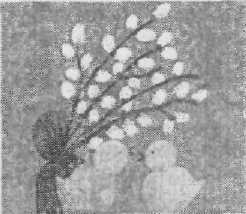 Обладнання. Таблиця, малюнки (зразки робіт) Із зображенням композиції "'Вербна неділя", вербові котики.