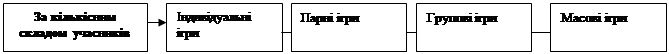 Більшість дослідників уважають, що дидактичні ігри, які проводяться на уроках іноземної мови, можна диференціювати за такими показниками: за змістом і цілями: а) мовні, мовленнєві; б) за типом завдань: оперативні, тактичні, стратегічні; в) за функціями: підготовчі; г) за кількістю учасників: індивідуальні, парні, групові, фронтальні; д) за рівнем складності: прості, складні, моноситуативні, поліситуативні; е) за тривалістю: тривалі, нетривалі; є) за рівнем складності інтелектуальної діяльності: ігри на впізнання, репродуктивні ігри, репродуктивно-варіативні, творчі ігри; ж) за способом, характером, формою проведення: письмові, усні, рухливі, предметні, функціональні, рольові, імітаційні, ігри-змагання [6]. Одним із позитивних аспектів цієї класифікації є те, що авторами розроблена значна кількість категорій. Це, деякою мірою, дозволяє чіткіше відносити ту чи іншу дидактичну гру до певної групи. З іншого боку, автори виділяють прості й складні ігри, не вказуючи критеріїв, за якими можна визначити рівень складності гри. Ми також переконані, що окремо виділяти таку групу дидактичних ігор як “творчі ігри” певним чином проблематично, оскільки організація будь-якої гри вимагає творчого підходу до її проведення як з боку учителя, так і учнів.