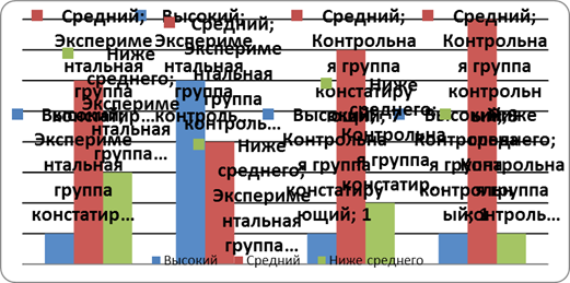 2. В экспериментальной группе увеличилось число детей с высоким уровнем сформированности с одного человека до 6; не стало детей с уровнем ниже среднего.