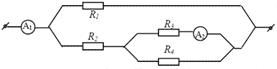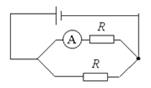 К кінцям кола, зображеного на малюнку, підведена напруга 270 В. Який струм буде показувати амперметр, якщо опір резисторів 135 Ом7