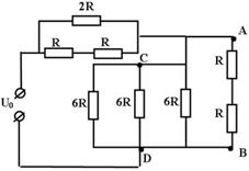 У скільки разів сила струму на ділянці АВ відрізняється від сили струму на ділянці СД, у схемі, приведеній на малюнку?