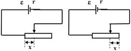 У колах, зображених на малюнках, потужність на завнішніх ділянках кола однакова. Визначити внутрішній опір джерела струму, якщо опір реостату 100 Ом, Х=1/5L. (Де L – довжина намотаної частини реостату),