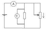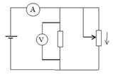 До кінців кола, зображеного на малюнку, підведена постійна напруга. Як зміниться показання приладів при зміщенні повзунка реостату вправо?