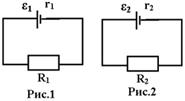 16. Два джерела струму з ЕРС ξ1 = 2 В, ξ2 = 1,5 В та внутрішнім опором r1 = 0,5 Ом та r2 = 0,4 Ом ввімкнуті паралельно опору R = 2 Ом. Визначити силу струму, що проходить крізь опір.