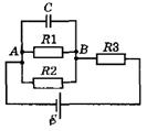 15. На малюнку R1 = R2 = 50 Ом, R3 = 100 Ом, С = 50 нФ. Визначити ЕРС джерела, зневажаючи його внутрішнім опором, якщо заряд на конденсаторі 2,2 мкКл. |