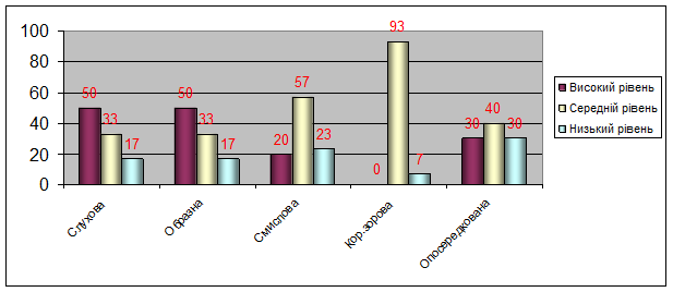 · кількість дітей, в яких спостерігається низький рівень відтворення, різко зменшується у віці від 3 до 4 років, а кількість дітей з високим рівнем відтворення зростає в період від 4 до 5 років. Чітких відмінностей між п'ятирічними і шестирічними не відзначалося.