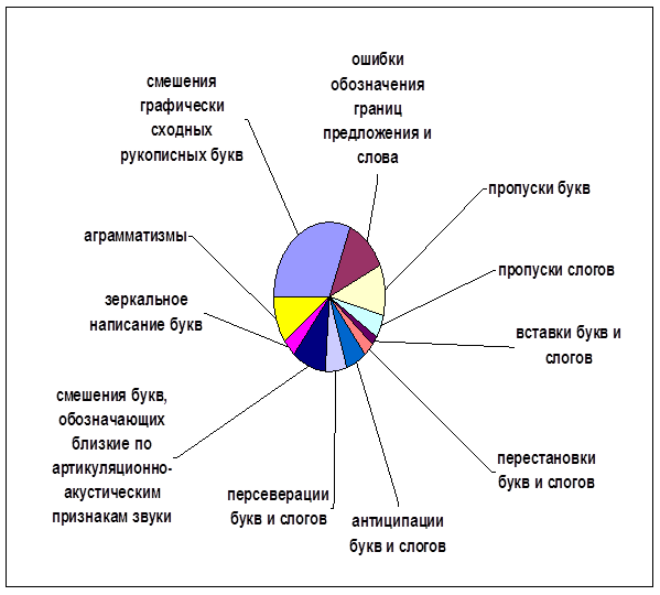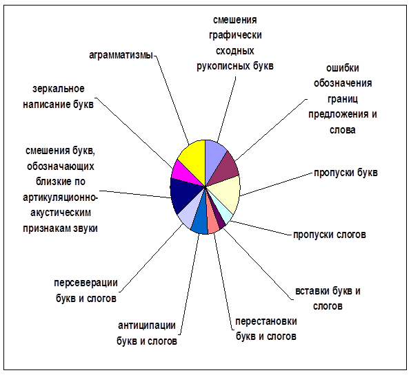 Дисграфия — это специфическое, избирательное расстройство. Дисграфия обусловлена недоразвитием (распадом) высших психических функций, осуществляющих процесс письма в норме. Ее наличие не означает снижение обучаемости вообще. Страдают вполне определенные навыки, механизмы которых оказались несформированными. Особенность этого вида нарушений письма проявляется в наличии особых или специфических ошибок, не свойственных здоровым детям и детям, неполно усвоившим программный материал.