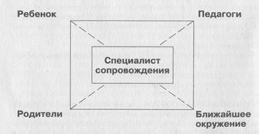 Следовательно, в теории сопровождения важным положением выступает утверждение, что носителем проблемы развития ребенка в каждом конкретном случае выступает и сам ребенок, и его родители, и педагоги, и ближайшее окружение ребенка (рис.1).