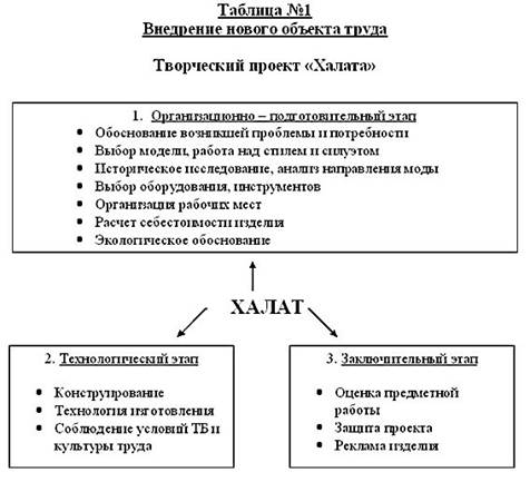 В период разработки и выполнения творческих проектов применяется индивидуальная форма организации учебного процесса. Учащиеся изготавливают различные виды швейных изделий: модели одежды различного назначения, декоративно-прикладные работы, создающие уют в доме.