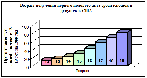 Данные русских исследователей показывают, что первую информацию о взаимоотношениях между полами и физиологических особенностях полового созревания человека старшие школьники только в единичных случаях получают от родителей, воспитателей и врачей. Разве можно считать нормальным, что в то время как детей в основном “просвещают” случайные знакомые, подчас с оттенком вульгарности и даже цинизма, педагоги, медики, родители сомневаются: стоит ли об “этом” говорить с подростками, кому и как проводить беседы по вопросам пола?