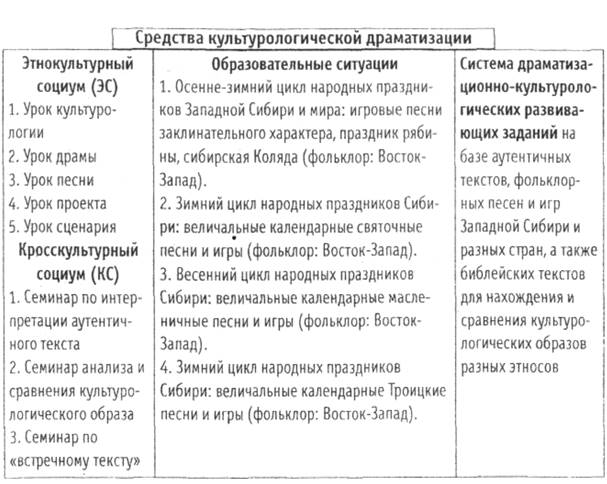 Средства культурологической драматизации для формирования духовно-нравственного социокультурного и кросскультурного образовательного пространства школьника (студента) с учетом регионального компонента ЭС и кросскультурного компонента КС