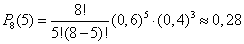 n=8 ; m=5 ; p=0,6 ; q=1-0,6=0,4 .