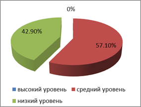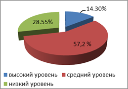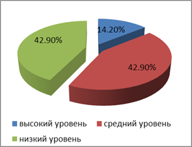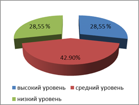 Сравним результат контрольного и итогового этапа по экспериментальной подгруппе. В экспериментальной подгруппе повысился интерес к занятиям, так как высокий уровень интереса вырос на двух детей, средний уровень составил три ученика и низкий уровень – два. Данные представлены в виде диаграмм (рис. 5).