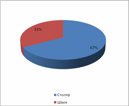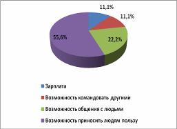Из диаграммы видно, что большое количество процентов детей привлекает в выбранной профессии – это приносить людям пользу, и на втором месте – это возможность общения с людьми. Для выбранных специальностей детей: столяр и швея, очень подходят эти функции. И не столь важными для детей является зарплата и командование другими.