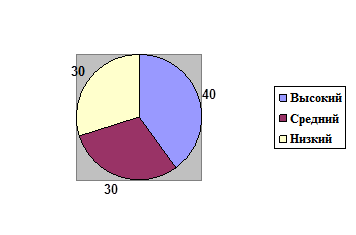 В процентном соотношении это можно продемонстрировать следующим образом: 40% – высокий уровень, по 30% – средний и низкий уровень