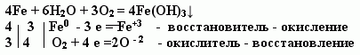 4Fe + 3O2 + 6H2 O = 4Fe(OH)3 ,