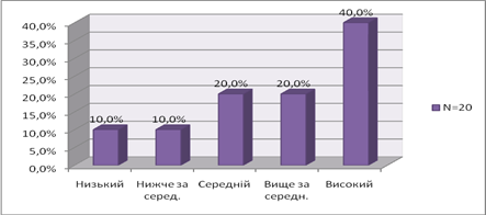 У 20% досліджуваних виявлений середній та вищий за середній рівень концентрації і стійкості уваги.