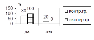 На диаграмме (рис.2) видно, что дети сопричастные в творческом процессе создания и исполнения народно-сценического танца имеют более широкий кругозор в области искусства танца и музыки, что вполне закономерно, обладают хорошим лексическим запасом, используемых для характеристики традиций национальной хореографической культуры.