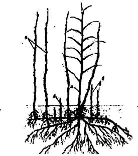 Учням також пояснюється спосіб розмноження рослин кореневими пагонами. Із цією метою восени їх викопують (відділяють лопатою від материнської рослини), сортують та прикопують в ґрунті до настання морозів для зберігання.