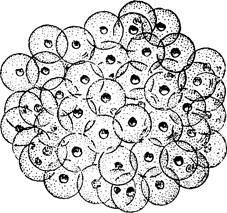 Низкая температура задерживает развитие. Если погода теплая, яйцо многократно делится и превращается в многоклеточный зародыш. Через одну-две недели из икринки вылупляется личинка лягушки — головастик. Внешне он напоминает маленькую рыбку с большим хвостом. Дышит головастик сначала наружными жабрами (в виде небольших пучков по бокам головы). Вскоре они сменяются внутренними жабрами. У головастика один круг кровообращения к двухкамерное сердце, на коже заметна боковая линия (см. с. 104). Таким образом, личинки земноводных имеют некоторые черты строения рыб.
