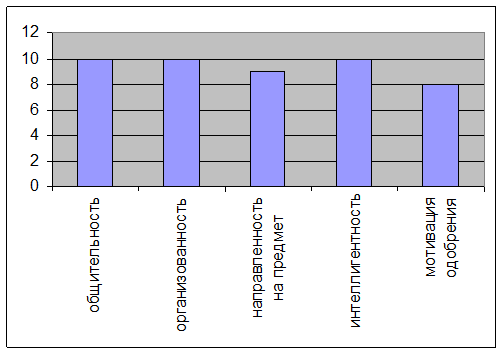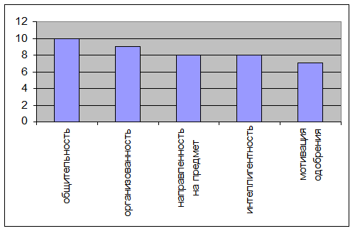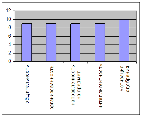 Каждое из направлений профессиональной направленности считается недостаточно развитым, если по данной шкале получено менее трех баллов, и ярко выраженным – при количестве баллов более семи. Для большей наглядности полученные результаты целесообразно выразить в виде круговой или столбцевой диаграммы. Выраженность одного фактора свидетельствует о мононаправленности личности учителя, а выраженность нескольких факторов может интерпретироваться как результат полинаправленности.