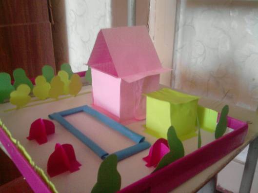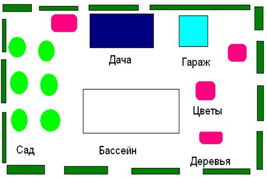 Ребята, сегодня на внеклассном занятии мы с вами будем выполнять проект. Наверно у каждого из вас есть дачный участок. Сегодня на занятии мы должны поговорить о ваших дачных участках, выяснить, какие они и попробовать смоделировать свой дачный участок. Затем, когда модель дачного участка будет готова, мы попробуем сделать его макет. Итак, как будет называться наш проект? Дачный участок. Что мы будем делать и что получиться в итоге? Сейчас послушайте внимательно, я расскажу план выполнения проекта. Сначала мы с вами поговорим о ваших участках, что на них находится, и чем они отличаются. Затем, вы за компьютерами в программе Paint нарисуете схему дачного участка, который вы хотите. Далее каждая группа представит свой план, мы выберем лучший, добавим, то, что будет не хватать, и все вместе изготовим его макет. Оценивать я буду каждую группу. У кого есть дачный участок? Что там есть? Какой дачный участок вы хотите построить, когда будете взрослыми, что там будет? Теперь каждая группа садиться за компьютеры и рисует схему своего дачного участка. Один человек от группы, представляет свой дачный участок и отвечает на вопросы. Все планы получились разнообразные и интересные, теперь мы из всех ваших сделаем один план. У нас получился дачный участок, сейчас будем по плану строить его макет. Первая группа рисует и вырезает дом, вторая – гараж, третья – бассейн, четвертая – сад и клумбы с цветами и пятая – деревья, которые будут вокруг всего дачного участка. Все детали макета готовы, теперь все вместе приклеиваем объекты дачного участка. Наш дачный участок готов. Как вы думаете, такой дачный участок можно построить на самом деле? Мы хорошо постарались, и теперь каждый может сам построить такой дачный участок на самом деле. |
