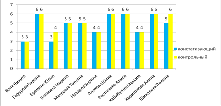 Таблица 4. Сравнительная таблица результатов данных констатирующего и контрольного экспериментов в экспериментальной группе ( в баллах).