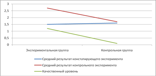 Как видно качественный уровень в экспериментальной группе составил 1,2 балла, а в контрольной 0,1 балл, что подтверждает эффективность и результативность проделанной работы.