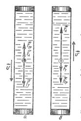 Объяснить, какие уравновешенные силы действуют на движущийся равномерно вниз шарик в стеклянной трубке с водой (рис. 4 а); на поднимающийся равномерно вверх пузырек воздуха (рис. 4 б).