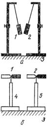 Данные сведения следует восстановить в памяти учащихся в более старших классах. Как показывает опыт, демонстрации упругого взаимодействия тел желательно позже дополнить демонстрациями взаимодействия наэлектризованных тел и взаимодействия тел посредством магнитного поля (рис. 5 а, б).