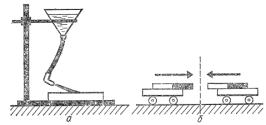 Изучение третьего закона Ньютона начинают с повторения опытов по взаимодействию тел (см. рис. 5), обращая внимание при этом на то, что каждое из тел действует на другое с некоторой силой.
