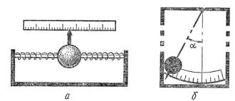 Используя второй закон Ньютона, с помощью опыта, подобного показанному на рисунке 12, можно проградуировать пружину в ньютонах. Практически тех же целей проще достичь, подвешивая к пружине гири и используя то обстоятельство, что при их равновесии