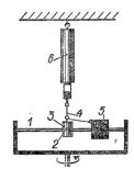 К динамометру (рис. 16) подвешивают тело 2, например цилиндр от ведерка Архимеда, а на столик динамометра 3 ставят сосуд 4 с водой (стрелки обоих динамометров лучше установить на нуле). Опуская цилиндр 2 в сосуд 4, наблюдают одновременное, равное и противоположное изменение показаний обоих динамометров.