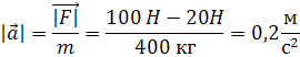 С каким ускорением будет двигаться вагонетка массой 400 кг, если на нее начнет действовать сила тяги 100 Н, а сила трения равна 20 Н?