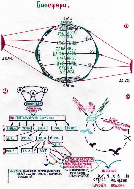 Пришел к выводу, что надо создать дополнительные условия для прочного усвоения знаний, отработки умений и навыков. Таким подсобным материалом для совершенствования условий познания придумал опорные схемы "План и карта", "Географические координаты", "Литосфера", "Гидросфера", "Атмосфера", "Биосфера" и "Гипотетический материк ФРеКРеПоРаЖД". Схемы создавались не на пустом месте. Познакомился с трудами В.Ф. Шаталова, с последним из них "Эксперимент продолжается", со статьями журнала "География в школе", представляющими опыт применения технологии Шаталова в географии.