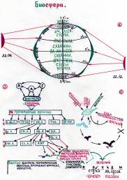 Во время изучения раздела "Гидросфера" можно объяснить механизм образования теплых и холодных течений на материке, а раздела "Атмосфера" - формирование тепловых поясов, смену времен года, продолжительность дня и ночи. Изучая раздел "Биосфера", схема гипотетического материка пополнилась "волной жизни", т.е. сменой природных комплексов в зависимости от их географического положения.